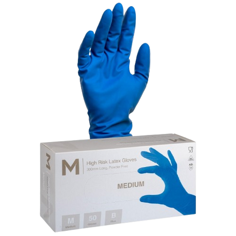Regular price $30.95Unit price /UnavailableLimited availability (6 units)High Risk Disposable Latex Gloves, Heavy Duty , Blue, Medium, 300mm (50)